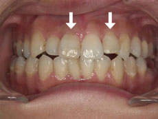 そのような場合、歯の裏側に小さな穴をあけて専用の薬をつめて漂白をおこなうことにより、歯だけでなく歯ぐきもきれいなピンク色に回復してきます。